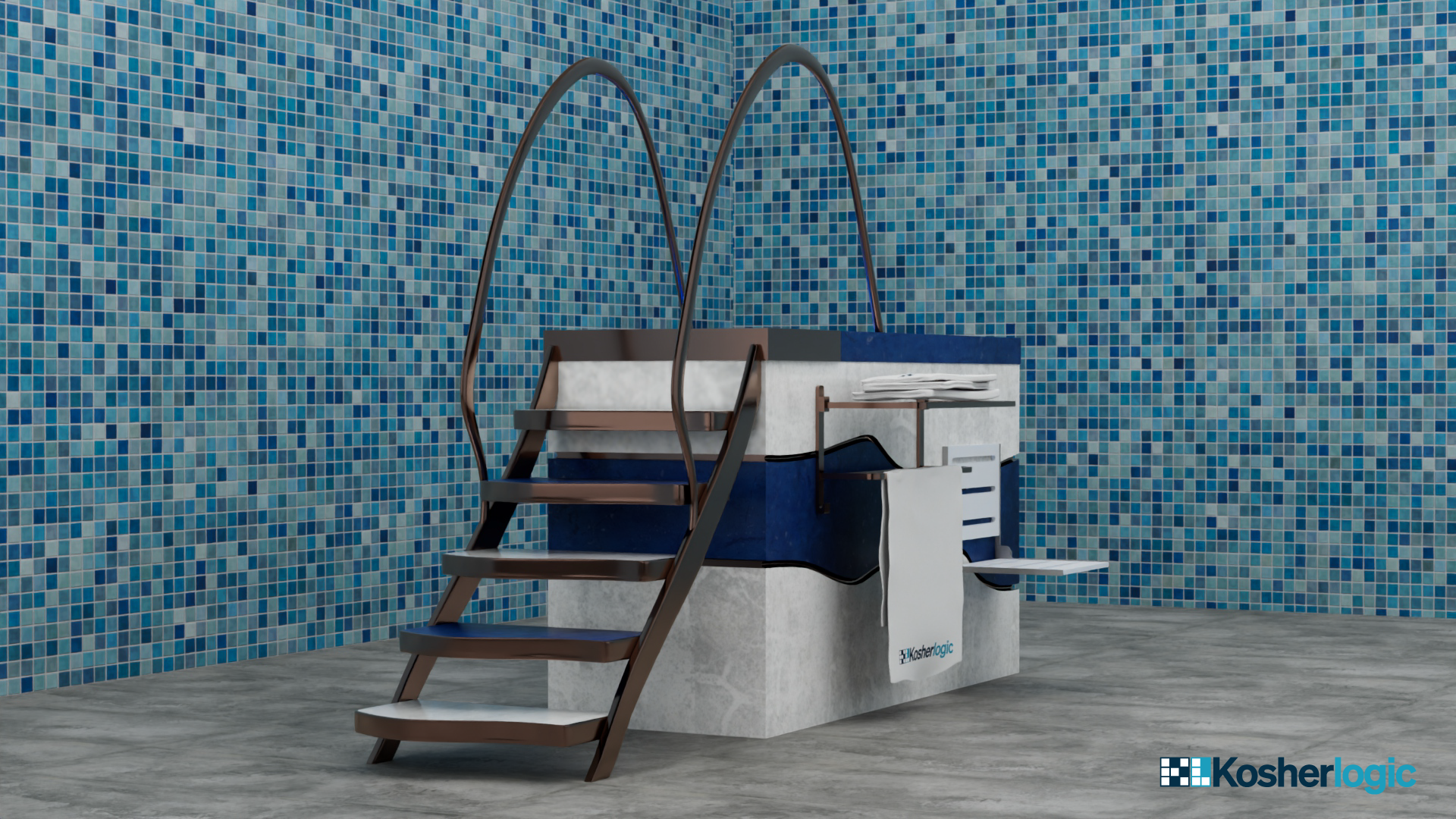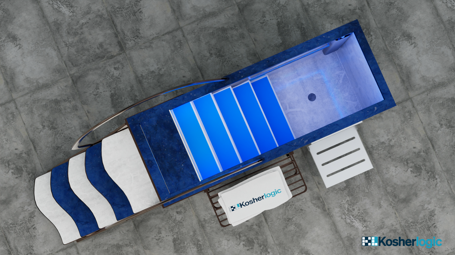 Now, Amram has partnered with KosherLogic to bring his mikva concept to the wider public, as a real polished and highly developed finished product, offering all one might need to enjoy a kosher, comfortable, and luxurious personal mikva